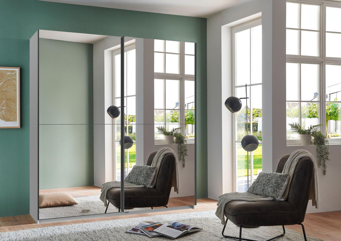 The Derby wardrobe features beautifil sliding wardrobes with the option of mirror or plain doors.  The interior consists of one shelf and rail each side, there is a colour choice...
